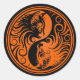 Pegatina Redonda Naranja y gatos Yin Yang negros