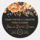 Gracias por celebrar con nosotros hoy. Estas pegatinas florales naranjas y negras son perfectas para los favores de su evento temático de otoño.