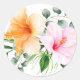 Pegatina Redonda Naranja y rosa Hibiscus Tropical Floral