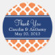 Naranja y patrón de quatrefoil blanco con boda azul real gracias pegatinas. patrón de quatrefoil naranja sobre blanco.