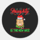 Pegatina Redonda Naughty Is The New Nice Christmas Santa Xmas Premi