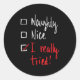 Pegatina Redonda Naughty Nice I Really Tried - Funny Christmas