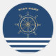 Pegatina Redonda Náutica,Rueda de barco de oro, franjas azules de l
