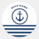 Pegatina Redonda Nautical Boat Name,Anchor Naval Blue Stried