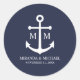 Pegatina Redonda Nautical Navy Blue Anchor Wedding