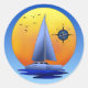 Desde el capitán hasta las manos de la cubierta, grandes ideas y productos de regalo de vela. Diseño de vela vectorial con catamarán, puesta de sol, gaviotas y un rosa de brújula.