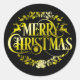 Celebre el momento más maravilloso del año y personalice sus regalos de Navidad durante la temporada navideña de la manera más conveniente con Stickers de Navidad. Con las palabras "Feliz Navidad" en un estilo tipográfico, junto con adornos decorativos y las siluetas de dos pequeños renos de color dorado sobre un fondo negro, esta etiqueta redonda clásica es perfecta para agregar un toque personalizado a sus obsequios de fiesta, decorar sobres, etiquetar regalos o de muchas otras maneras.