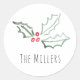 Pegatina Redonda Navidad Personalizada de Acuarela con Acebo Fiesta