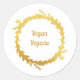 Pegatina Redonda Navidad Vegana Blanca Dorada Bilingüe