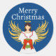 Pegatina Redonda Navidades Angel Modern Wreath Wings Halo Blue