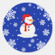 Pegatina Redonda Navidades azules Snowman Snowflakes