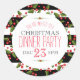 Pegatina Redonda Navidades Berry Wreath Black & White Stripes