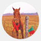 Pegatina Redonda Navidades Caballo con arco y caldo