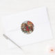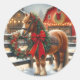 Pegatina Redonda Navidades Caballo en una granja festiva