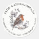 Pegatina Redonda Navidades cantan pájaro y verde plateado