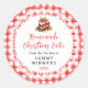 Este pegatina divertido y caprichoso presenta pasteles de Navidades en una doncella de encaje blanco y fondo de gingham rojo. Es perfecto para etiquetar tus productos caseros. El texto combina el guión manuscrito y las fuentes serif para un aspecto elegante y moderno.