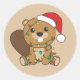Pegatina Redonda Navidades castores Animales de invierno Beaver Cla