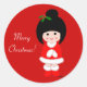 Pegatina Redonda Navidades Chicas de Kokeshi en rojo
