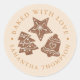 pegatina personalizado para los panaderos y cocineros a los que les gusta hornear/cocinar y regalar a otros, o para los que lo hacen profesionalmente. Hay ilustracion de galletas de vacaciones en el medio. Hay un texto que circula en círculo que dice "hecho de amor". Puede personalizar de este producto agregando su propio nombre o nombre comercial.