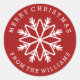 Selle las tarjetas y regalos de sus Navidades con estos lindos pegatinas personalizados, con un fondo rojo de vacaciones con un copo de nieve blanco rodeado por el saludo y el nombre de su personalizado. ¡El color rojo es cambiante! Haga clic en el botón de edición y elija su color favorito para esta temporada de invierno. Por favor, visite nuestra tienda para ver otros artículos que coincidan.