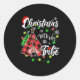 Pegatina Redonda Navidades Con Mi Tribu Familia Juegan Navidad Paja