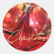 Pequeños pegatinas redondos personalizados presentan una bella estrella roja adorno de árbol de Navidad y las palabras "Feliz Navidad". Perfecto para sellos para sobres, favores partidarios y más. También disponible como pegatina de 3". COINCIDIENDO elementos de nuestra colección.