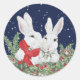 Pegatina Redonda Navidades Conejo Conejo Nieve Verdor Festividad Fe