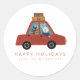Pegatina Redonda Navidades Conejo de Autos Felices Fiestas Personal