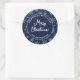 Pegatina Redonda Navidades Copos de nieve en azul gradiente