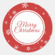 Navidades festivos pegatina de focas vacacionales o suministro de envoltura. Hermosos copos de nieve blancos con fondo rojo y deseo navidad Feliz Navidad con un moderno guion blanco. Desee unas vacaciones felices con este elegante sello para sobres en su correo a sus amigos y familiares.