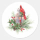 Pegatina Redonda Navidades de acuarela Cardenal Rojo y Berries