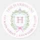 Pegatina Redonda Navidades de acuarela Chinoiserie Monograma Escudo