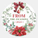 Pegatina Redonda Navidades de acuarela Nombre de la familia Wreath