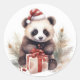 Pegatina Redonda Navidades de acuarela Panda Bear