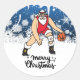 Navidades de baloncesto tarjeta de vacaciones con Pegatina de Ronda Clásica de Santa Claus