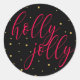 Black and Gold Script Red Holly Jolly Navidades Classic Round Pegatina