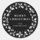 Pegatina Redonda Navidades de Black Merry Christmas Holly Wreath