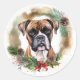 Pegatina Redonda Navidades de Boxer Wreath Festimes Pup