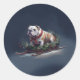 Pegatina Redonda Navidades de bulldog nevan invierno
