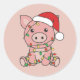 Pegatina Redonda Navidades De Cerdo Animales De Invierno Cerdos Clá