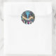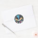 Pegatina Redonda Navidades de compras en la ciudad en un día de nie