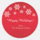 Pegatinas de vacaciones de Navidades de copos de nieve rojos y blancos. Personalizar con cualquier texto.