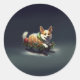 Pegatina Redonda Navidades de Corgi nevan invierno