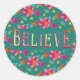 Pegatina Redonda Navidades de creencia floral festiva colorida