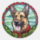 Pegatina Redonda Navidades de Cristal de Pastor Alemán