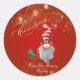 Pegatina Redonda Navidades de Cute Gnome Pine Tree Sleigh