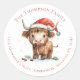 Navidades de Dirección de Retorno de Vaca de la Cuta Highland. Añada algo de colorido gusto festivo a sus envíos de correo de vacaciones con esta encantadora vaca de bebé en la sierra en un diseño de Santa Hat, con su nombre curvado arriba y su dirección de retorno curvada abajo. Todo el texto se puede personalizar fácilmente.