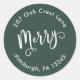 Pegatina de vacaciones de Merry Script verde y blanco festivo con dirección de retorno. Consulta esta tienda para coordinar invitaciones a Navidades y accesorios de correo.