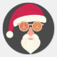 Pegatina Redonda Navidades de gafas de sol de Santa Face Retro