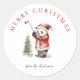 Cute Panda jugando al golf pegatina navideña. acuarelas rústicas y un oso panda blanco y negro estilo lino vestido como Santa jugando al golf. Texto personalizado con un precioso guión de moda.
